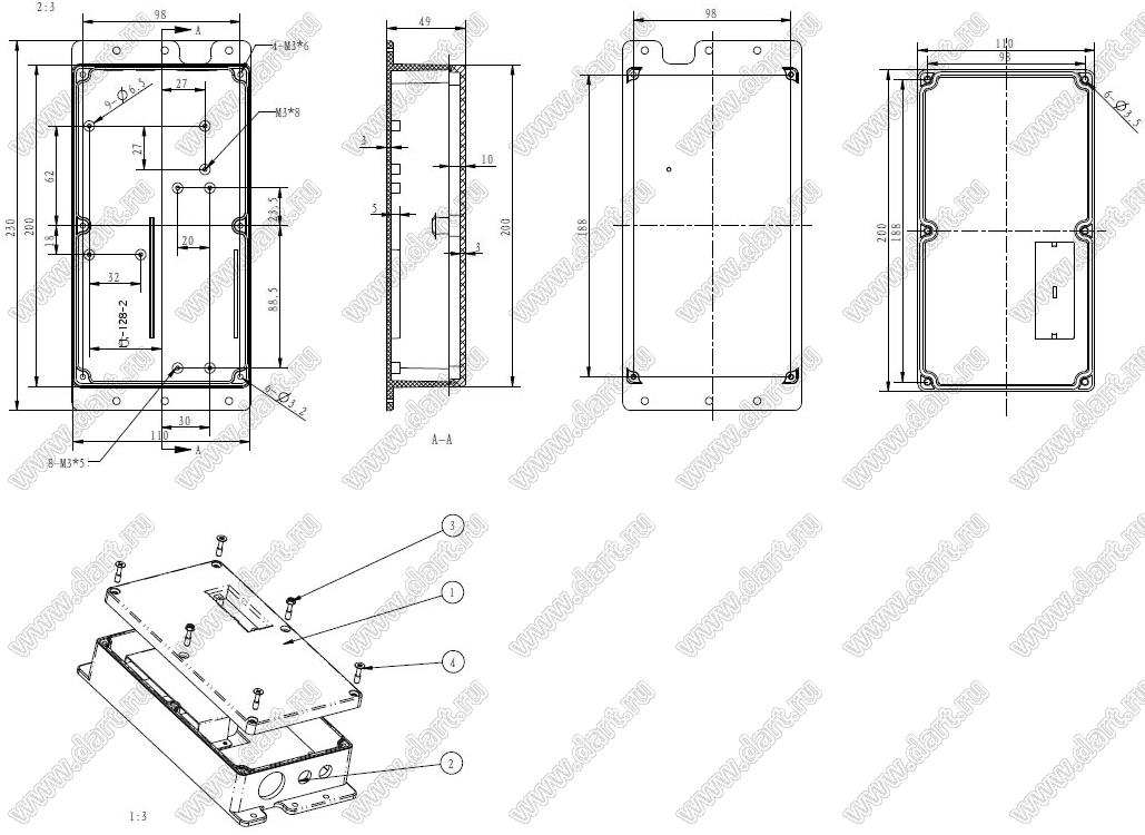 Каталог > Корпусные и установочные изделия > Корпуса для РЭА > Пластиковые влагозащищенные корпуса (Case 11-xx) > Case 11-128