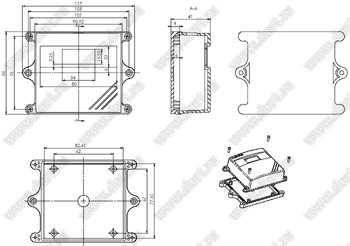 Каталог > Корпусные и установочные изделия > Корпуса для РЭА > Пластиковые влагозащищенные корпуса (Case 11-xx) > Case 11-82