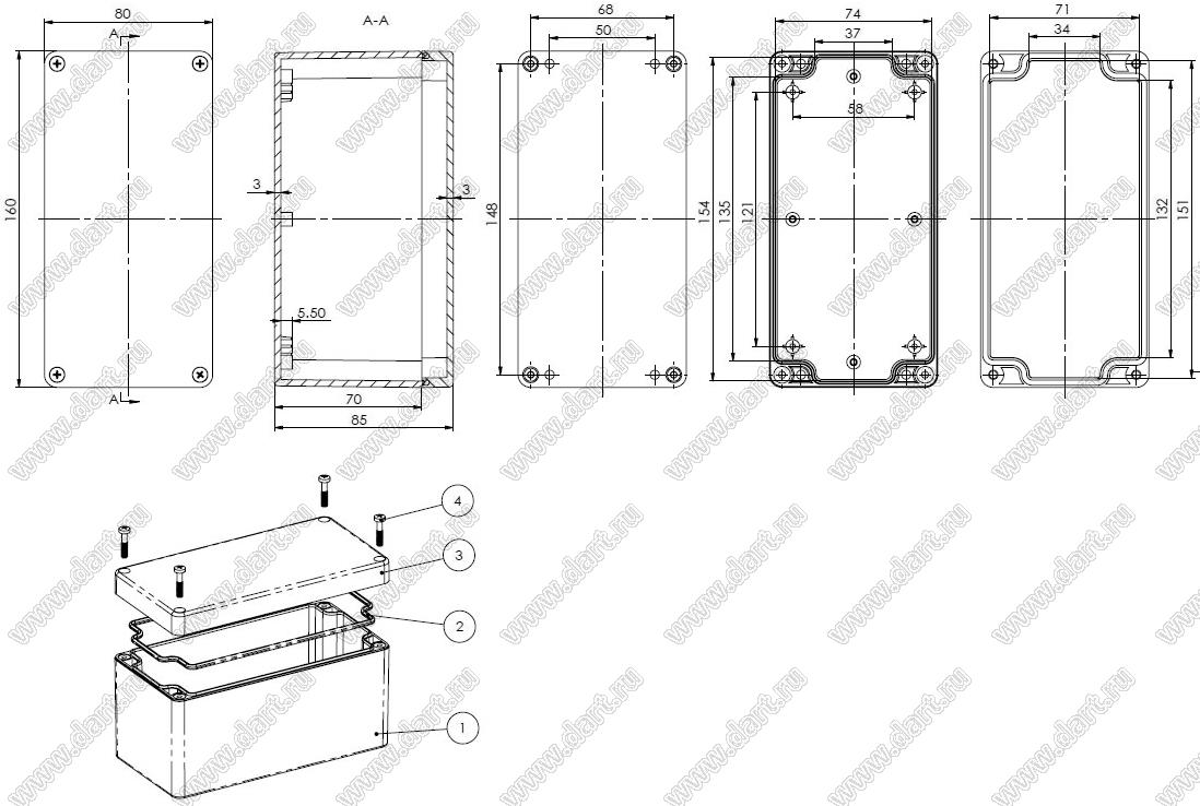 Каталог > Корпусные и установочные изделия > Корпуса для РЭА > Пластиковые влагозащищенные корпуса (Case 11-xx) > Case 11-86