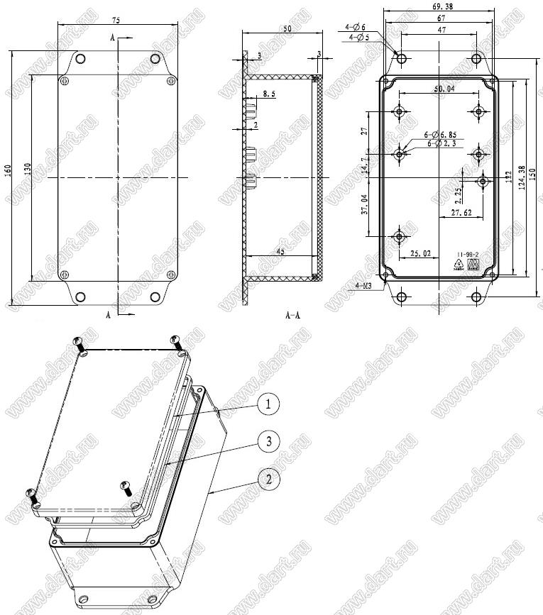 Каталог > Корпусные и установочные изделия > Корпуса для РЭА > Пластиковые влагозащищенные корпуса (Case 11-xx) > Case 11-99A