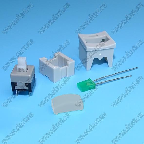 Переключатель кнопочный (серый корпус, серая клавиша, зеленый светодиод, MPS-850N без фиксации 8.5x8.5); I=0,1А; U=30В