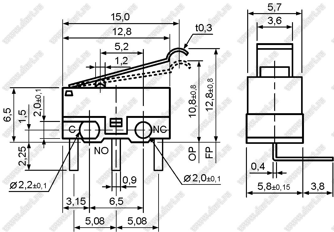 Каталог > Электронные компоненты, радиодетали > Переключатели, кнопки > Переключатели концевые/микропереключатели (MICRO) > DM > DM1-02D-40