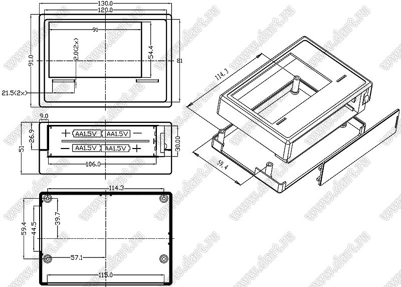 Case 18-21 корпус настольный 130x91x51 мм   Case 18-21