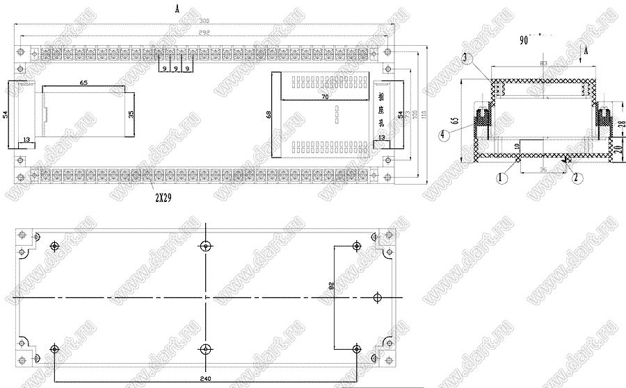 Промышленный управляющий корпус (комплект с двумя клеммными колодками) 300x110x65 мм; пластик ABS