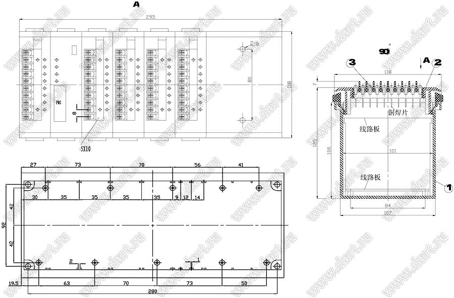 Промышленный управляющий корпус (комплект с двумя клеммными колодками) 295x118x125 мм