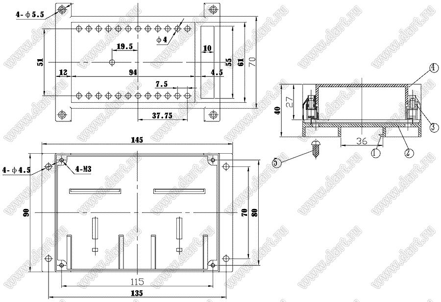 Промышленный управляющий корпус (комплект с двумя клеммными колодками) 145x90x40 мм