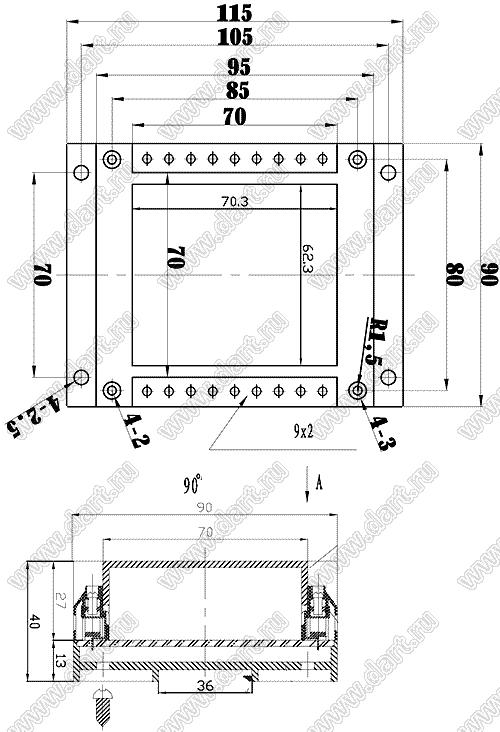 Промышленный управляющий корпус (комплект с двумя клеммными колодками) 115x90x40 мм
