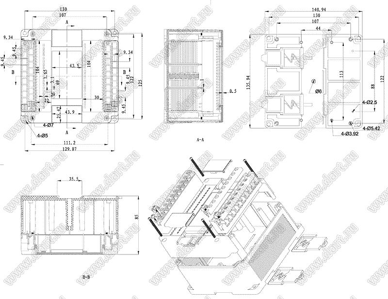 Промышленный управляющий корпус (комплект с двумя клеммными колодками) 141x136x85 мм