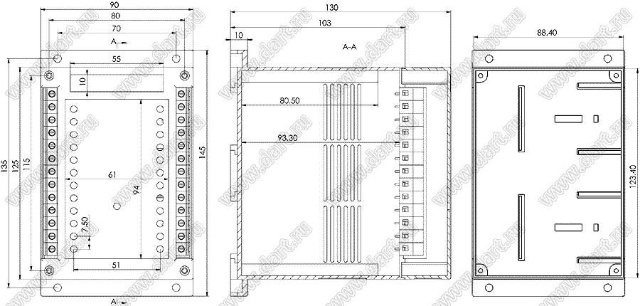 Промышленный управляющий корпус (комплект с двумя клеммными колодками) 145x90x130 мм