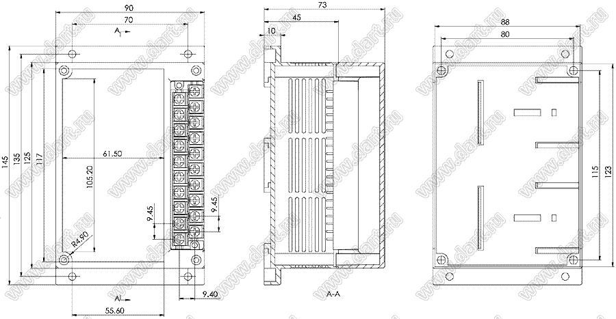 Промышленный управляющий корпус (комплект с двумя клеммными колодками) 145x90x73 мм