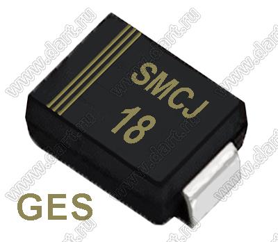Каталог > Электронные компоненты, радиодетали > Диоды > Диоды защитные (диоды ограничительные) > Диоды защитные SMD > Диоды защитные SMCJ (1.5) серия > SMCJ18 (SMC/DO-214AB)