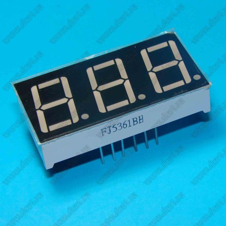 Каталог > Оптоэлектроника и индикация > Индикаторы светодиодные (сегментные дисплеи, матрицы, шкалы, светящиеся поля) > Цифровые и цифро-буквенные cветодиодные сегментные индикаторы (дисплеи) > 3-разрядные 7-сегментные индикаторы > 3-разр. 0.56 дюйм. 7-сегм. 5361 серия > BJ5361BH
