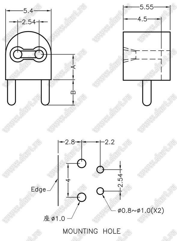 Каталог > Фурнитура для электронных устройств > Держатели и изоляторы компонентов > Держатели светодиодов > Держатели светодиодов угловые на плату > 1 x d=5,0мм > LEKH-10