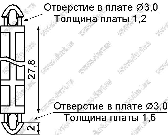 Каталог > Фурнитура для электронных устройств > Фиксаторы плат, стойки межплатные > Фиксаторы под круглое отверстие > Фиксаторы с двумя защелками > Прочие > MADL-27.8