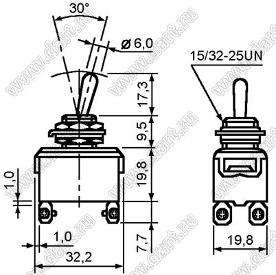 Каталог > Электронные компоненты, радиодетали > Переключатели, кнопки > Переключатели рычажные (тумблеры, TOGGLE) > Прочее > T902AW (E-TEN1221)