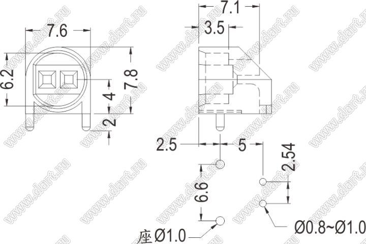 Каталог > Фурнитура для электронных устройств > Держатели и изоляторы компонентов > Держатели светодиодов > Держатели светодиодов угловые на плату > 1 x d=5,0мм > LEK-534