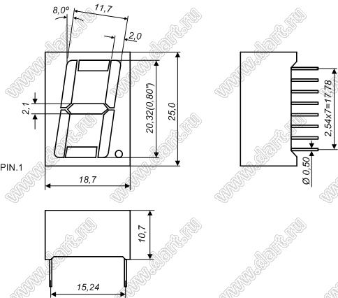 Каталог > Оптоэлектроника и индикация > Индикаторы светодиодные (сегментные дисплеи, матрицы, шкалы, светящиеся поля) > Цифровые и цифро-буквенные cветодиодные сегментные индикаторы (дисплеи) > 1 разрядные сегментные индикаторы > 1-разр. 0.8 дюйм. 7-сегм. 8101 серия > BJ8101AH