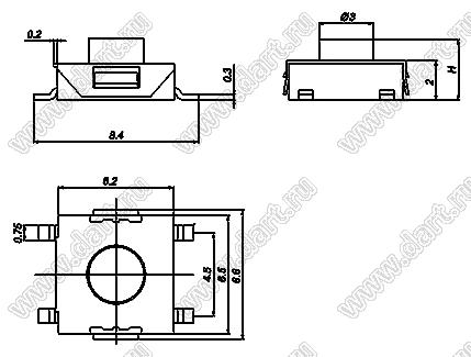 Каталог > Электронные компоненты, радиодетали > Переключатели, кнопки > Переключатели тактовые (TACT, тактовые кнопки) > Тактовые кнопки SMD (для поверхностного монтажа) > 6,2x6,6 мм > TSTP034 серия > TSTP034W-320BH-T/R