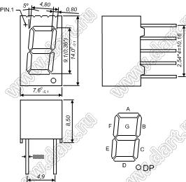 Каталог > Оптоэлектроника и индикация > Индикаторы светодиодные (сегментные дисплеи, матрицы, шкалы, светящиеся поля) > Цифровые и цифро-буквенные cветодиодные сегментные индикаторы (дисплеи) > 1 разрядные сегментные индикаторы > 1-разр. 0.36 дюйм. 7-сегм. 3162 серия > BJ3162AG