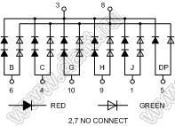 Каталог > Оптоэлектроника и индикация > Индикаторы светодиодные (сегментные дисплеи, матрицы, шкалы, светящиеся поля) > Цифровые и цифро-буквенные cветодиодные сегментные индикаторы (дисплеи) > 1 разрядные сегментные индикаторы > 1-разр. 0.56 дюйм. 7-сегм. 5162 серия > BJ18103CEG