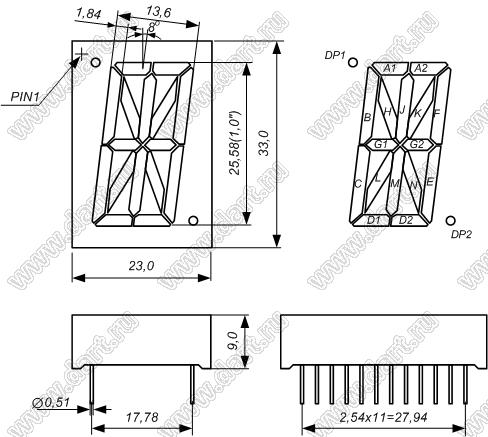 Каталог > Оптоэлектроника и индикация > Индикаторы светодиодные (сегментные дисплеи, матрицы, шкалы, светящиеся поля) > Цифровые и цифро-буквенные cветодиодные сегментные индикаторы (дисплеи) > 1 разрядные сегментные индикаторы > 1-разр. 1 дюйм. 16-сегм. 10108 серия > BJ10108AG