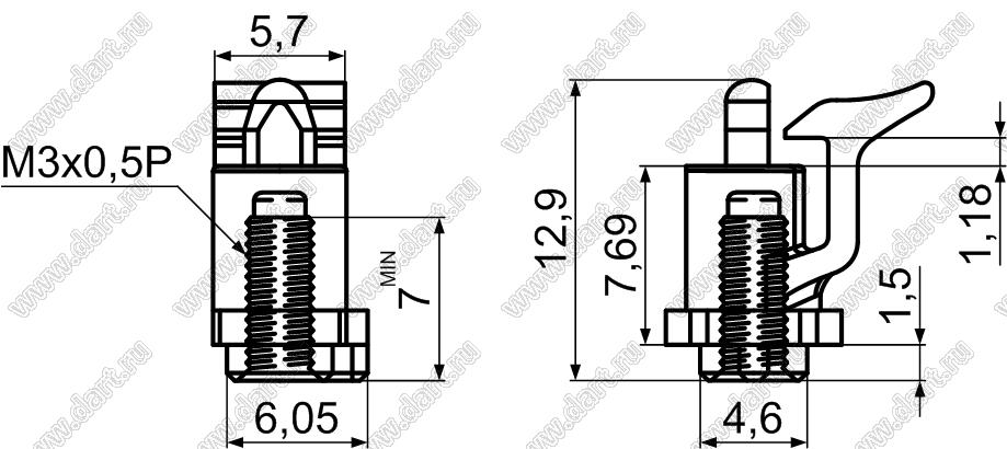 Каталог > Фурнитура для электронных устройств > Фиксаторы плат, стойки межплатные > Фиксаторы под круглое отверстие > Фиксаторы с двумя защелками > Прочие > ULCD-7.8