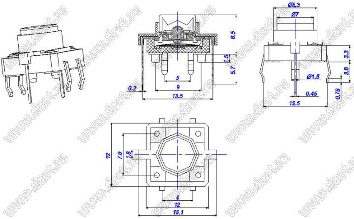 Каталог > Электронные компоненты, радиодетали > Переключатели, кнопки > Переключатели тактовые (TACT, тактовые кнопки) > Тактовые кнопки прямые для монтажа в отверстия платы > 12,0x12,0 мм > TS-G010 > TS-G010E