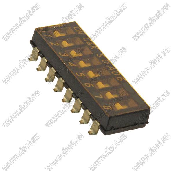 Каталог > Электронные компоненты, радиодетали > Переключатели, кнопки > DIP переключатели > DMR (SWD4-xx) серия (P=2,54 мм) > DMR-08-T-V-T/R (SWD4-8)-2.54